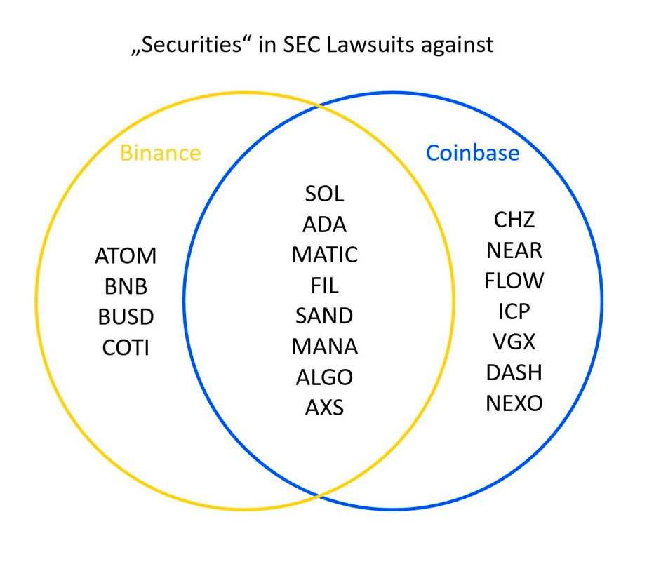 SEC has asserted in its complaints against Binance and Coinbase that numerous tokens are securities, and therefore both exchanges are in breach of law. The SEC claims that Binance and Coinbase should have complied with the regulation as platforms for trading securities.